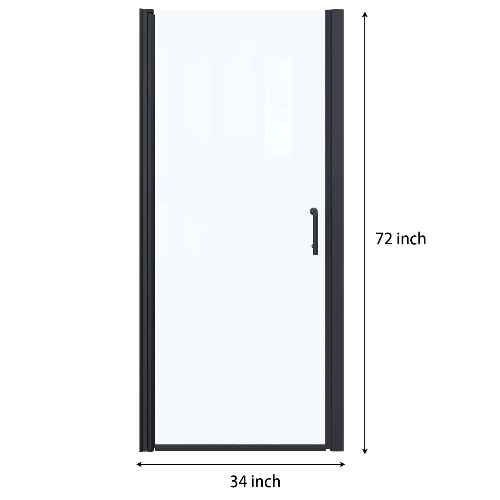 Semi-Frameless Pivot Shower Door 34-35"W x 72"H in Matte Black With Clear Glass