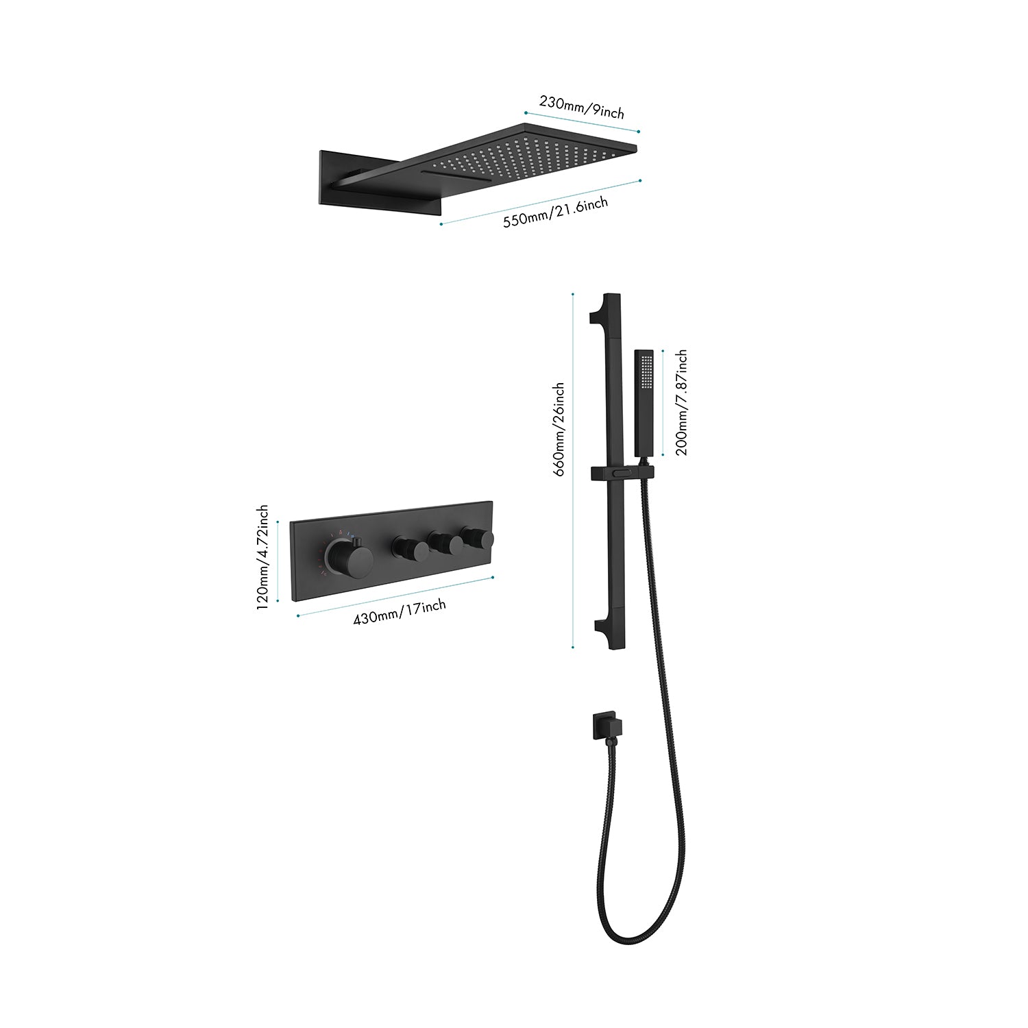 Shower Head with Handheld Shower System with 8" Rainfall Shower Head, Dual Shower Combo