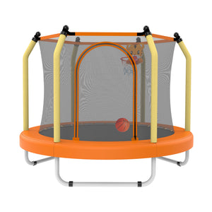 - Provides Total Protection: This trampoline uses high quality and comfortable trampoline net, the net is fully visible and you can observe your child around the mesh. The six bumpers are covered with thick foam protection to prevent children from hitting the bumper directly, double-sided zipper for children can easily enter and exit from the inside and outside, the zipper is smooth and won't get stuck.