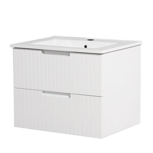 - Floating Bathroom Vanity: Wall mounted vanity with sink will not take up floor space of bathroom, and facilitates easy cleaning. The bottom is convenient for placing dirty clothes baskets and daily cleaning. The overall dimensions 24"L x 18.25" W x19.25"H. (Faucet and pop-up device not included.)