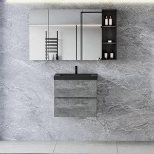 - Clean and Functional: Enhance your bathroom with this space-saving, wall-mounted vanity featuring a gray storage cabinet to neatly organize cosmetics and other essentials. Its modern, minimalist design enhances the aesthetics of your space while maximizing functionality.