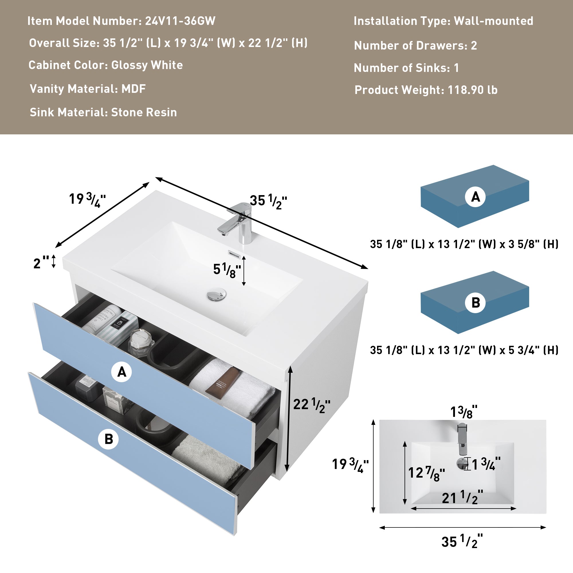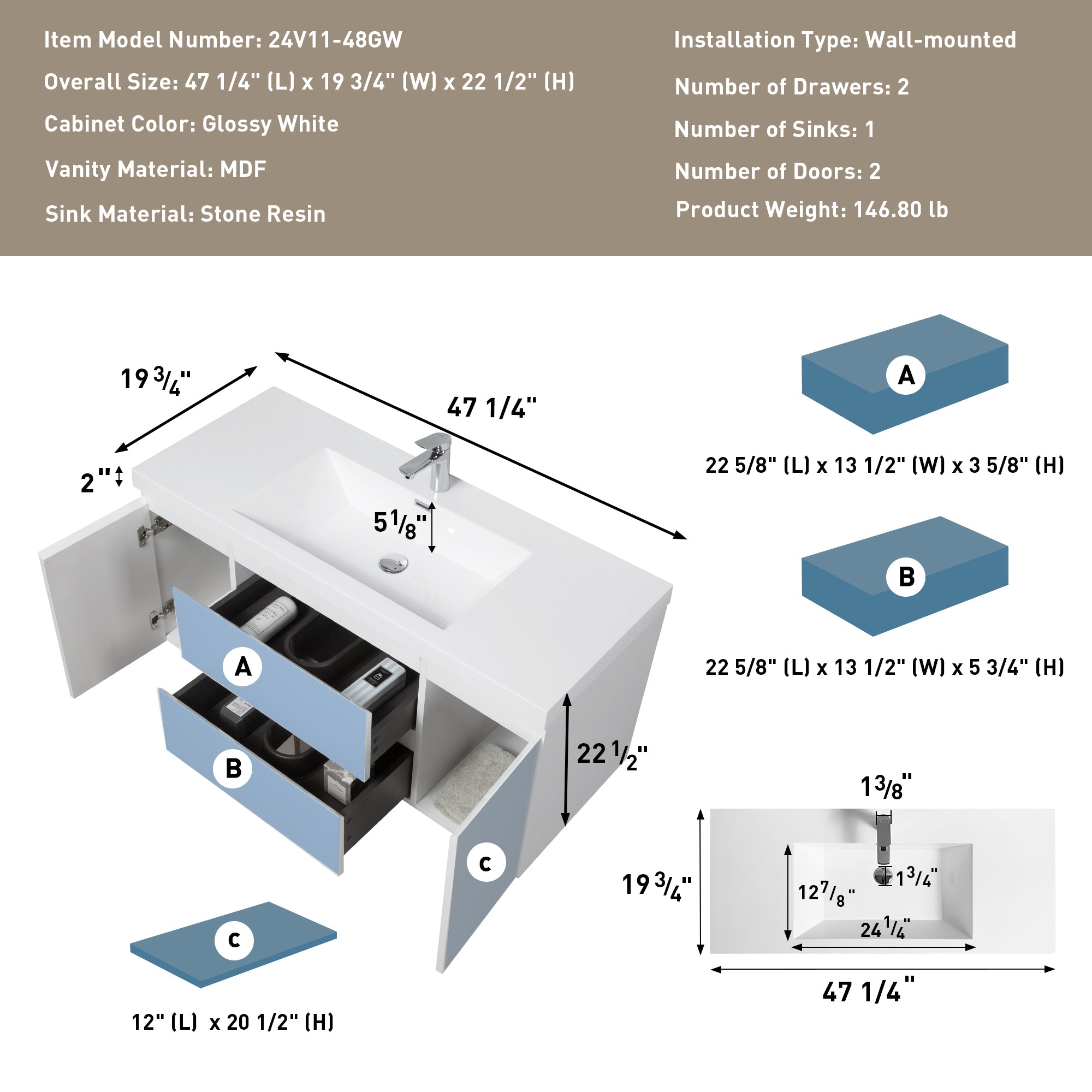 Modern 24-Inch Wall-Mounted Bathroom vanity with 2 Drawers, Green - Ideal for Small Bathrooms