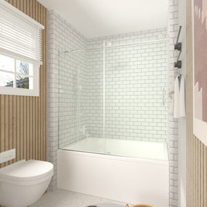 - 58 in. W to 60 in. W x 60 in. H semi-frameless sliding alcove tub door
