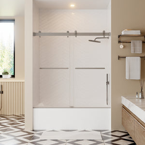 - Safety Tempered Glass: The double sliding bathtub door is made of 3/8 inch (10 mm) thick tempered glass with ANSI Z79.1 certified and SGCC certified for high impact resistance and high thermal stability to ensure durability and safety.