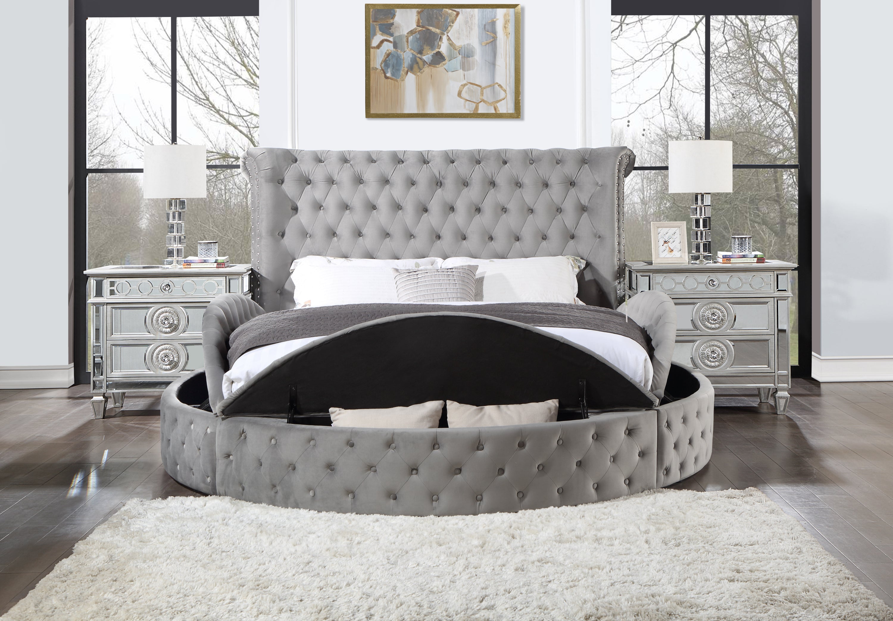 ACME Gaiva Queen Bed w/Storage, Gray Velvet BD00967Q