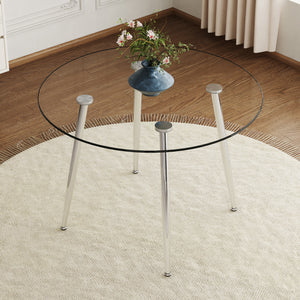 - Make every meal a treat. Our glass-topped silver leg round table, which combines clear glass with silver metal legs, not only provides a spacious dining space, but also gives your home a modern and elegant atmosphere.