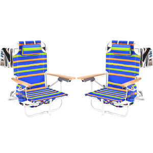 - The beach chair can be adjusted in 5 gears ,Rubber wood handrail ,With cup holder ,Backpack ,600D Oxford cloth