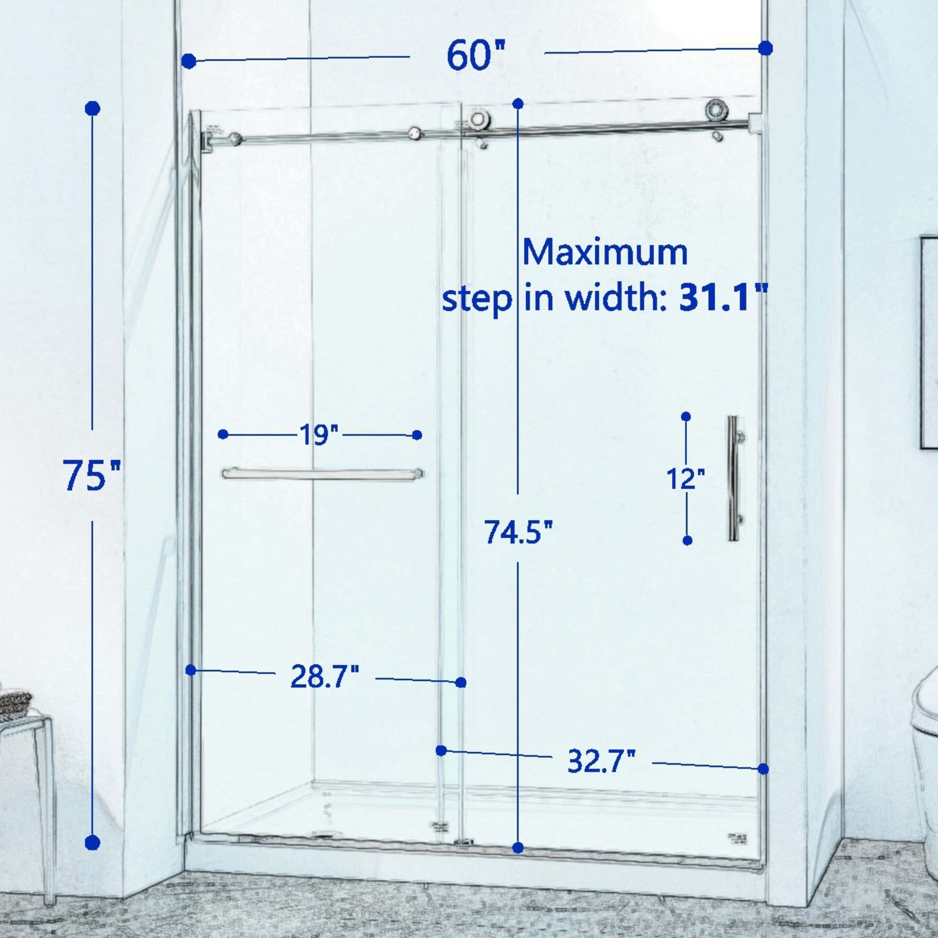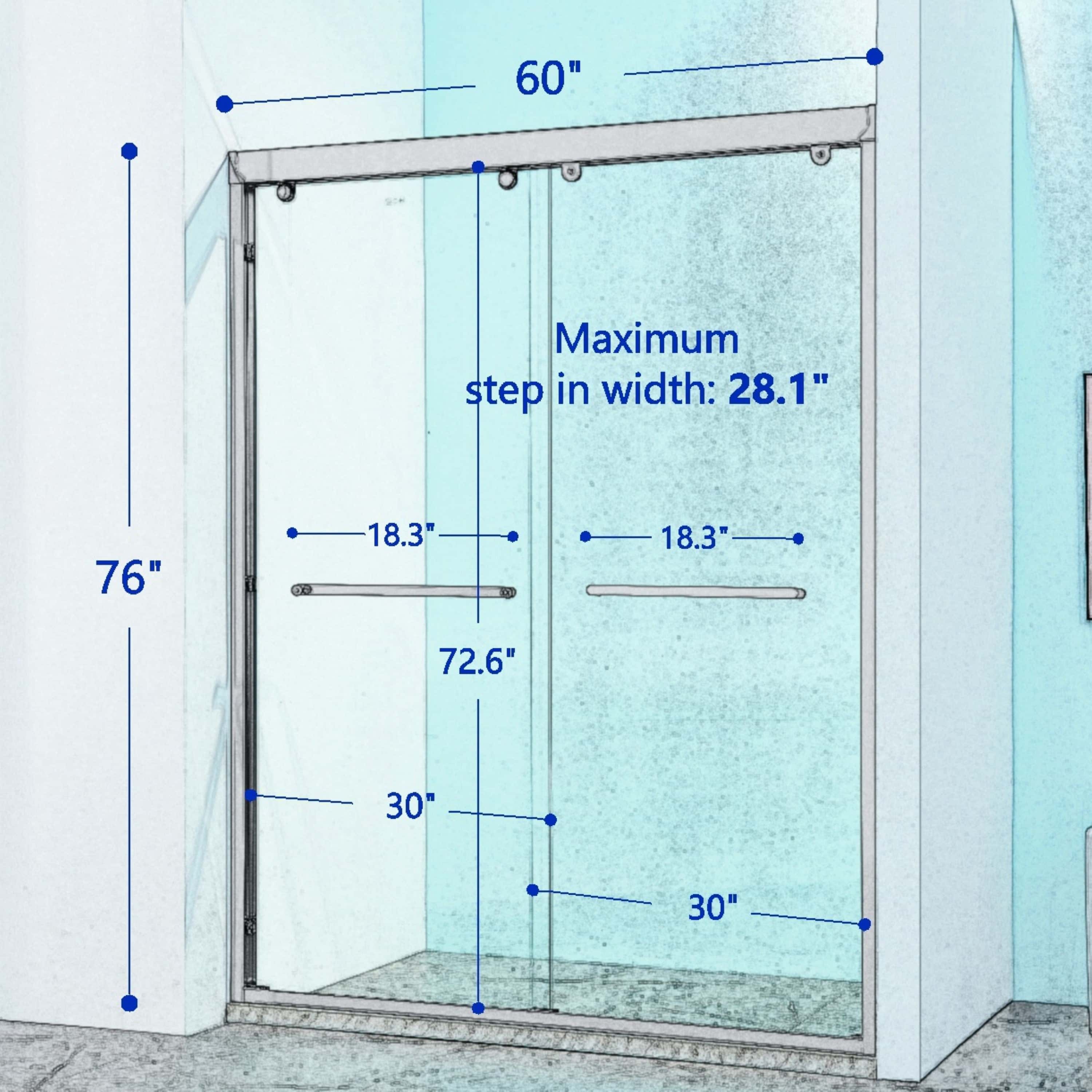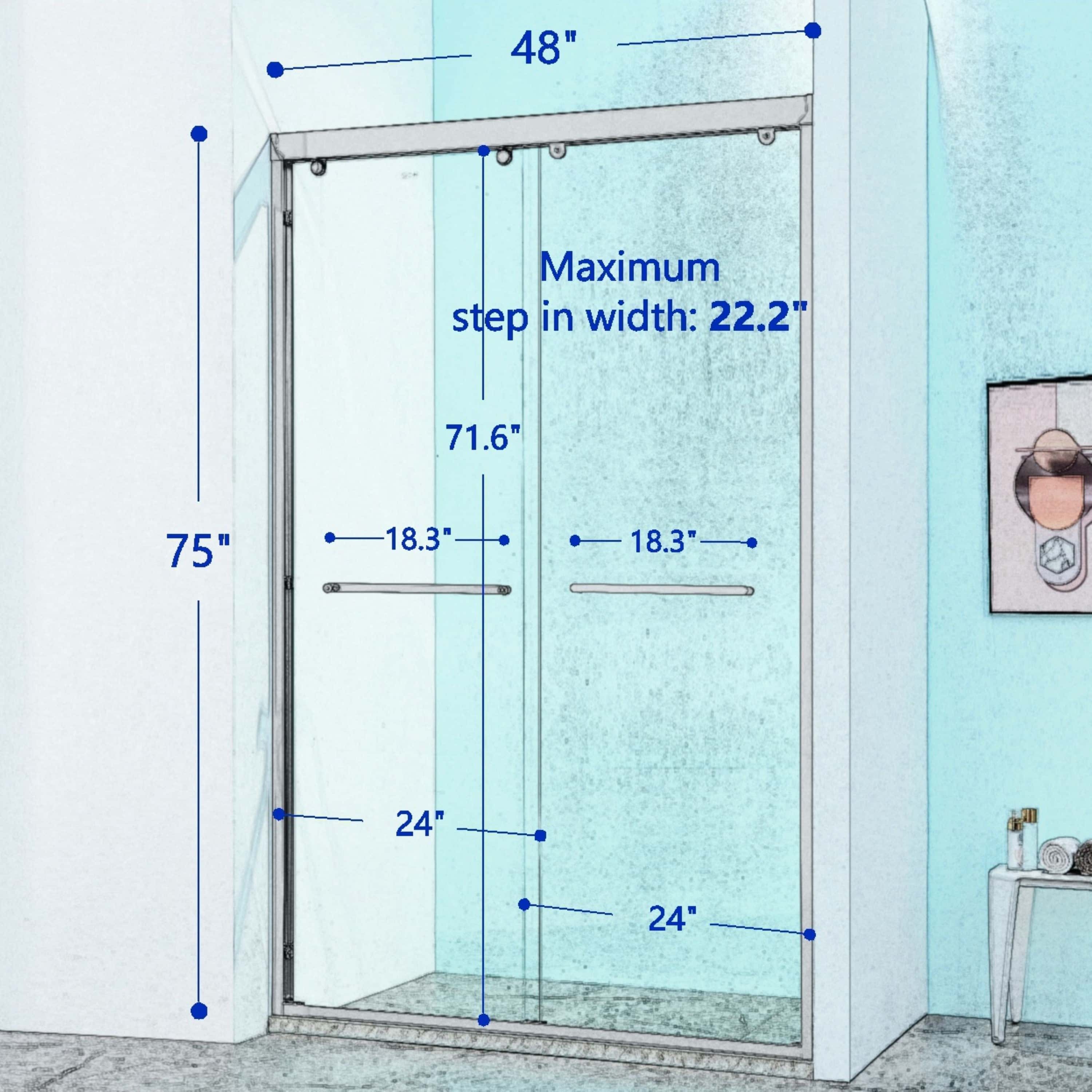44-48"W x 75"H Double Sliding Shower Door, Aluminum Alloy Frame with 5/16" (8mm) Thick SGCC Tempered Clear Glass.