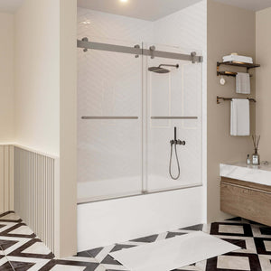 - Safety Tempered Glass: The double sliding bathtub door is made of 3/8 inch (10 mm) thick tempered glass with ANSI Z79.1 certified and SGCC certified for high impact resistance and high thermal stability to ensure durability and safety.