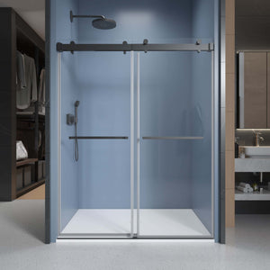 - Clear Tempered Safety Glass: The double sliding framless shower doors are made of 3/8-inch (10 mm) thick tempered glass with ANSI Z79.1 certified and SGCC certified for high impact resistance and high thermal stability to ensure durability and safety.