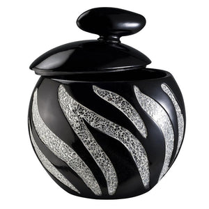 - The decorative box features glass mosaic zebra pattern accents with black lacquer finished