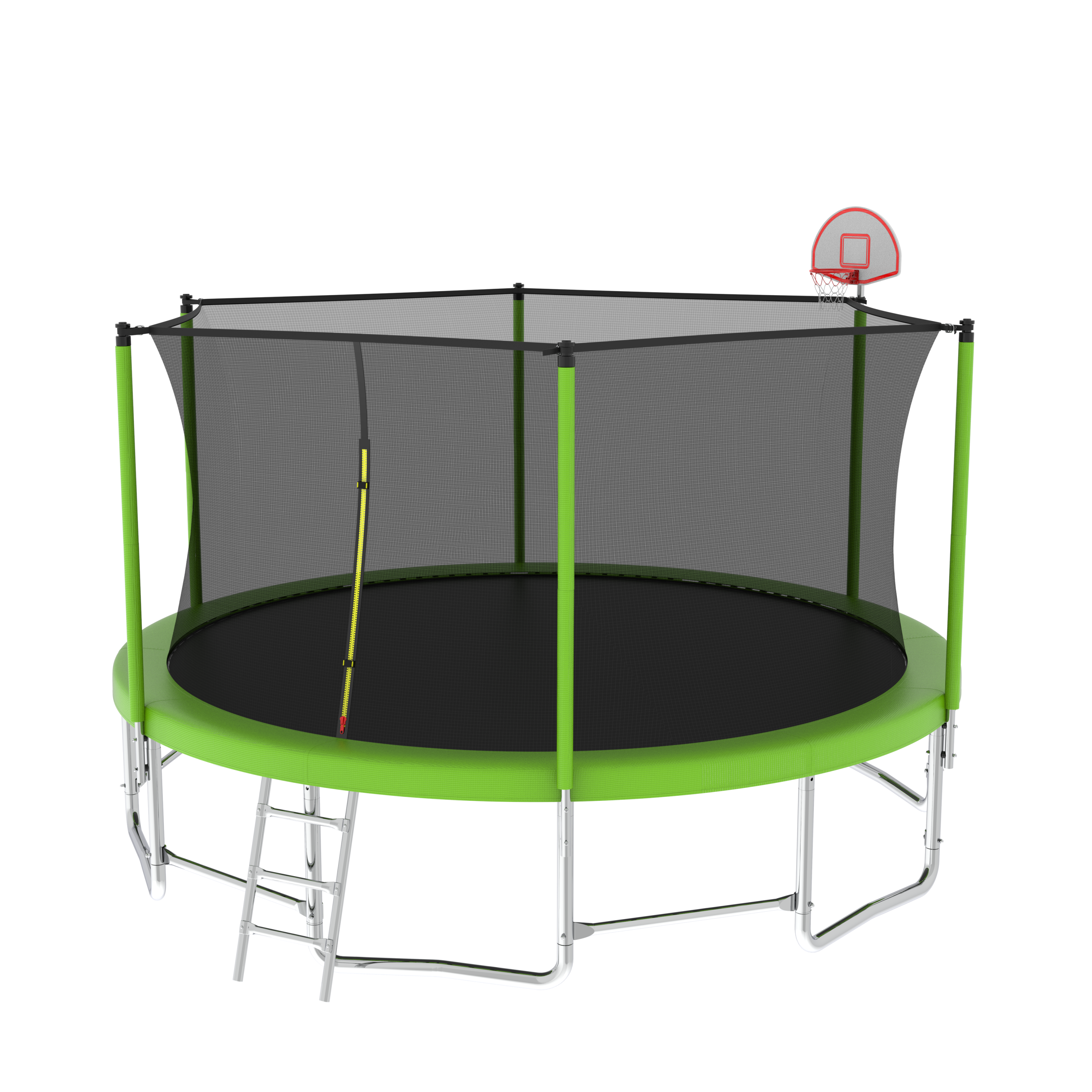 15FT Trampoline with Basketball Hoop Inflator and Ladder(Inner Safety Enclosure) Green