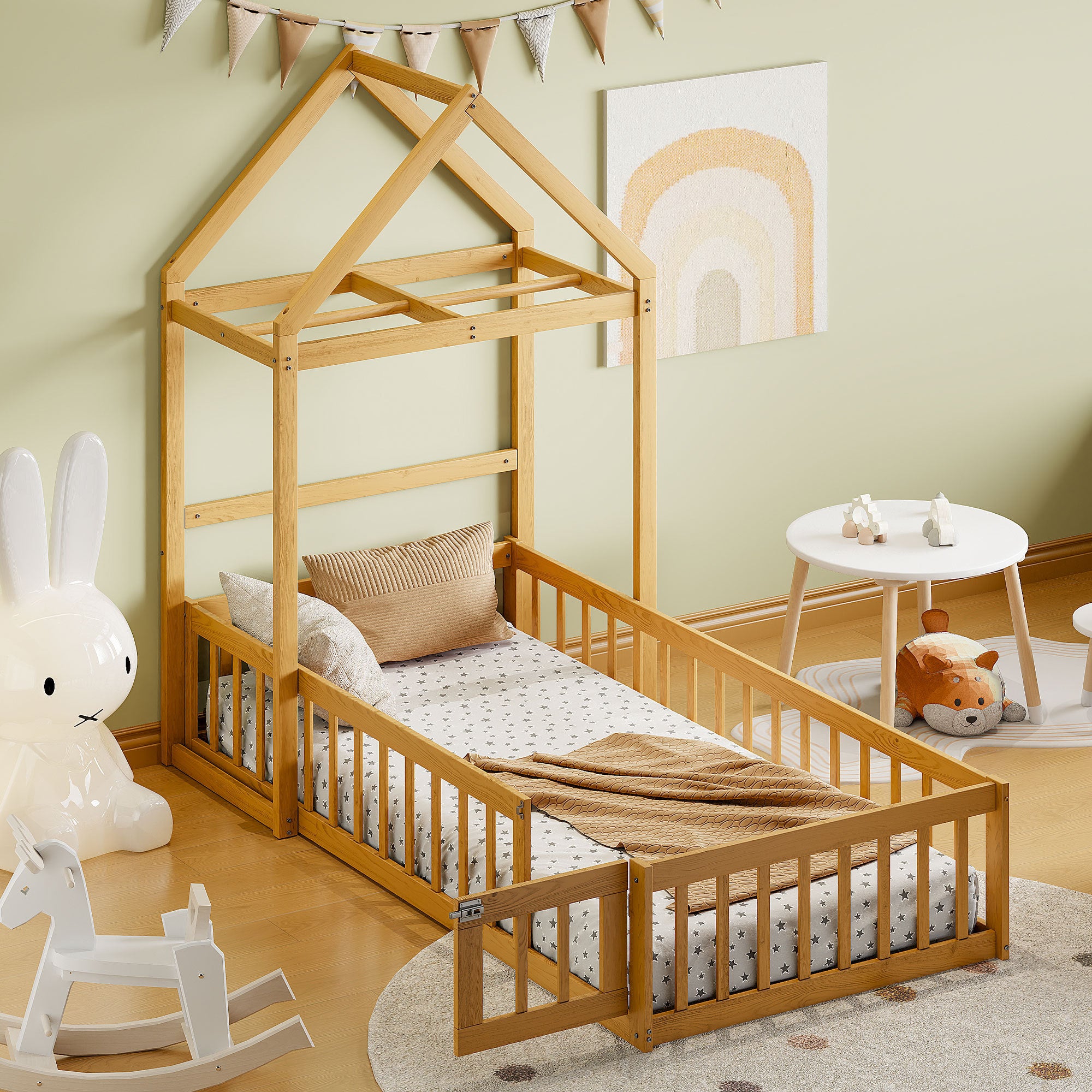 Wood Twin Size Loft bed with Multiple Storage Shelves and Wardrobe, Gray