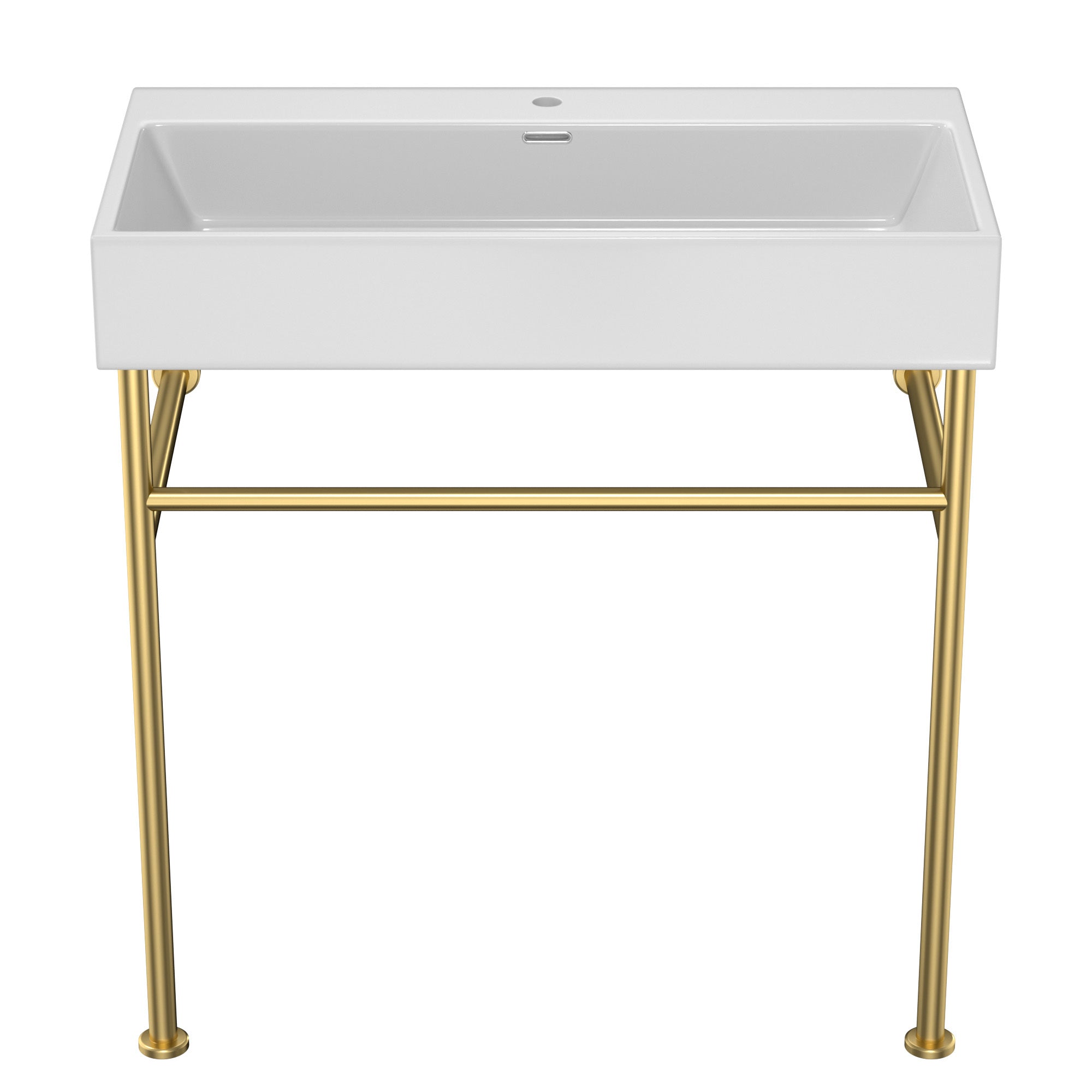 30" Bathroom Console Sink with Overflow,Ceramic Console Sink White Basin Gold Legs