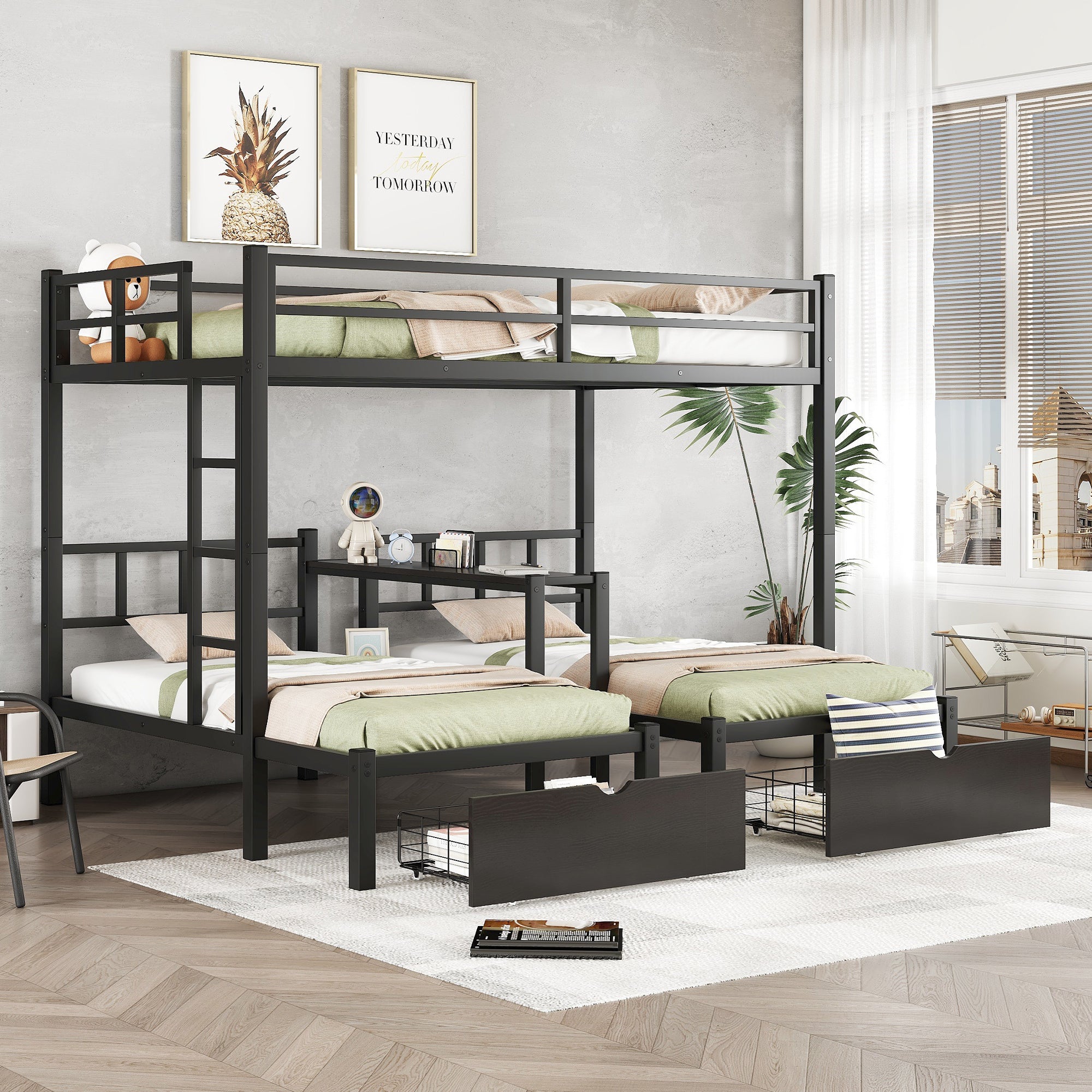 Twin over Twin Bunk Bed with Trundle, Black(OLD SKU:MF192387AAB)