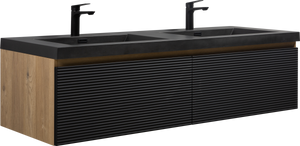 60" Floating Bathroom Vanity with Two Sinks, Modern Wall-Mounted Bathroom Storage Vanity Cabinet with Countertop and Soft Close Drawers, Ink Black CRUIS-60