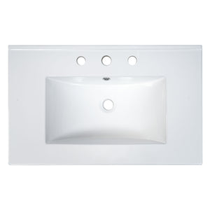 1.30 inch ceramic basin 2. 3 Pre-Drilled Hole 3.Fits 8" center faucet, white (faucet and cabinet not included)