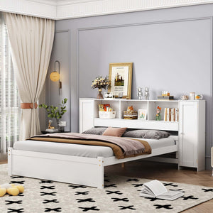 - [Multiple Storage Headboard] The headboard has 3 built-in shelves and 2 side lockers, offering storage space for books, clothes and toys.