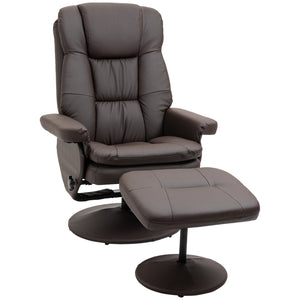HOMCOM Recliner and Ottoman with Wrapped Base, Swivel PU Leather Reclining Chair with Footrest for Living Room, Bedroom and Home Office, Brown