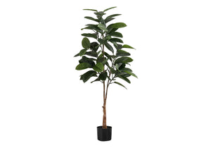 - Add a vibrant burst of greenery to any floor of your home or office with this 52" tall artificial indoor rubber tree in a 5" black pot.