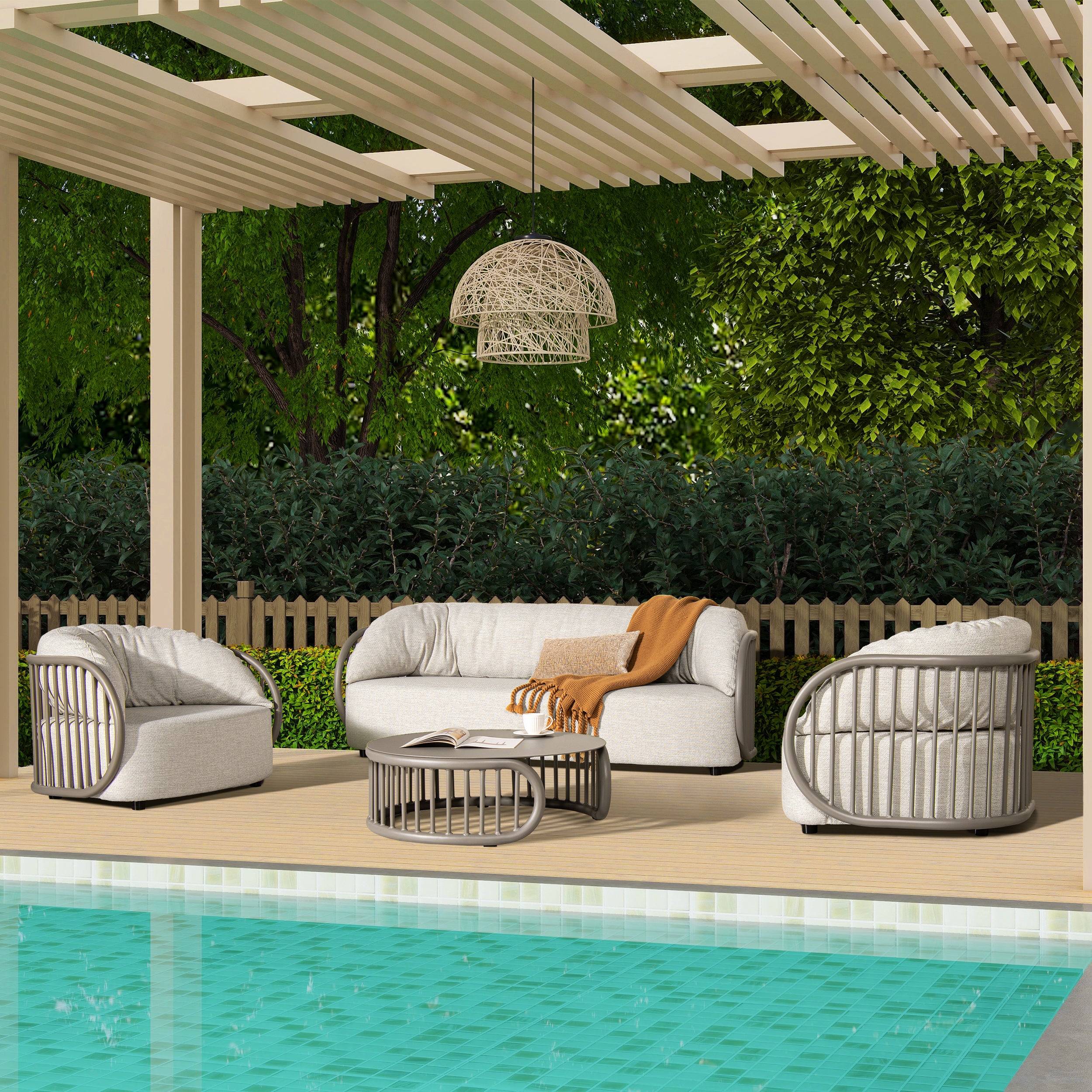 Harper 42.5" Barrel Upholstered Patio Deep Seating Armchair, Oat Beige Axroma Olefin