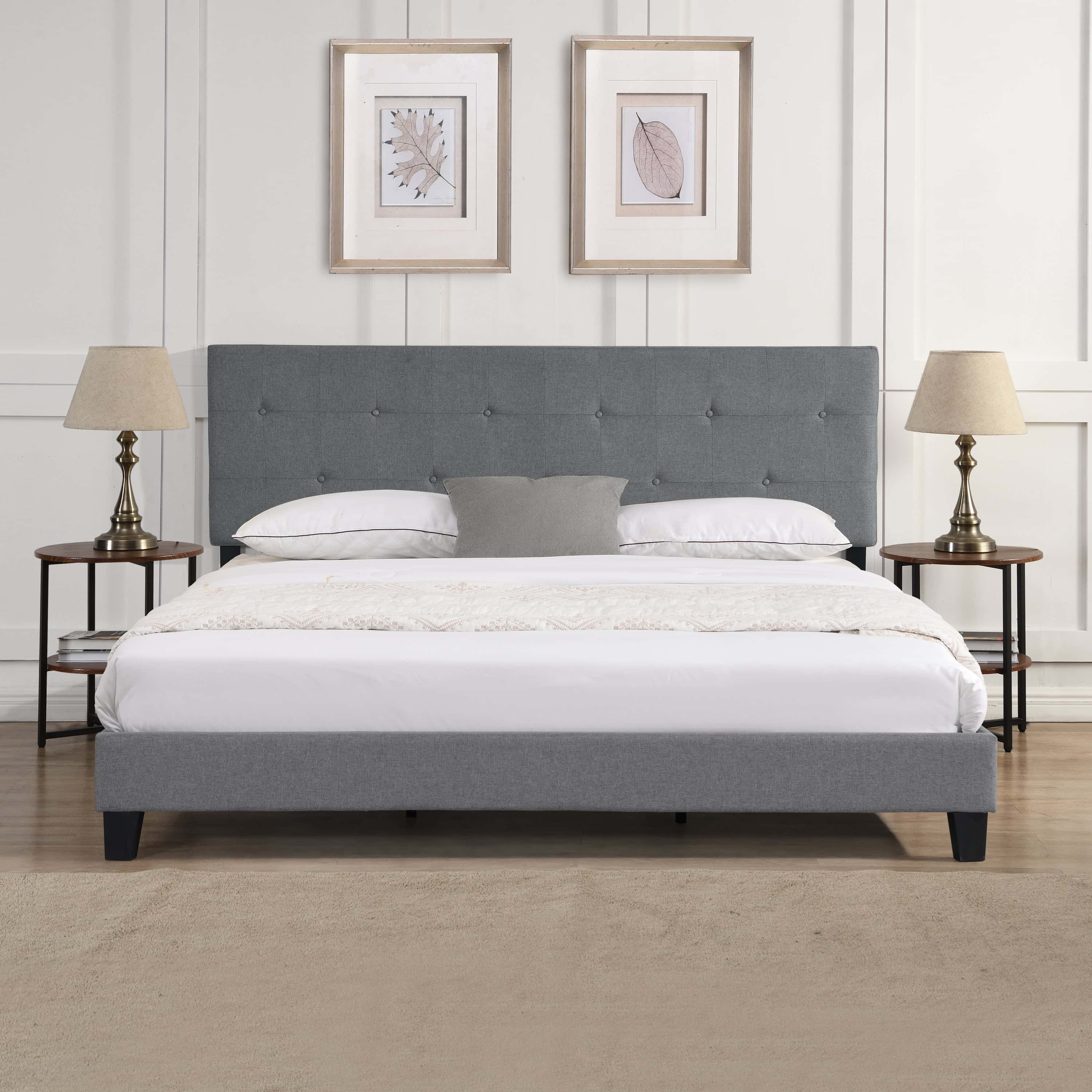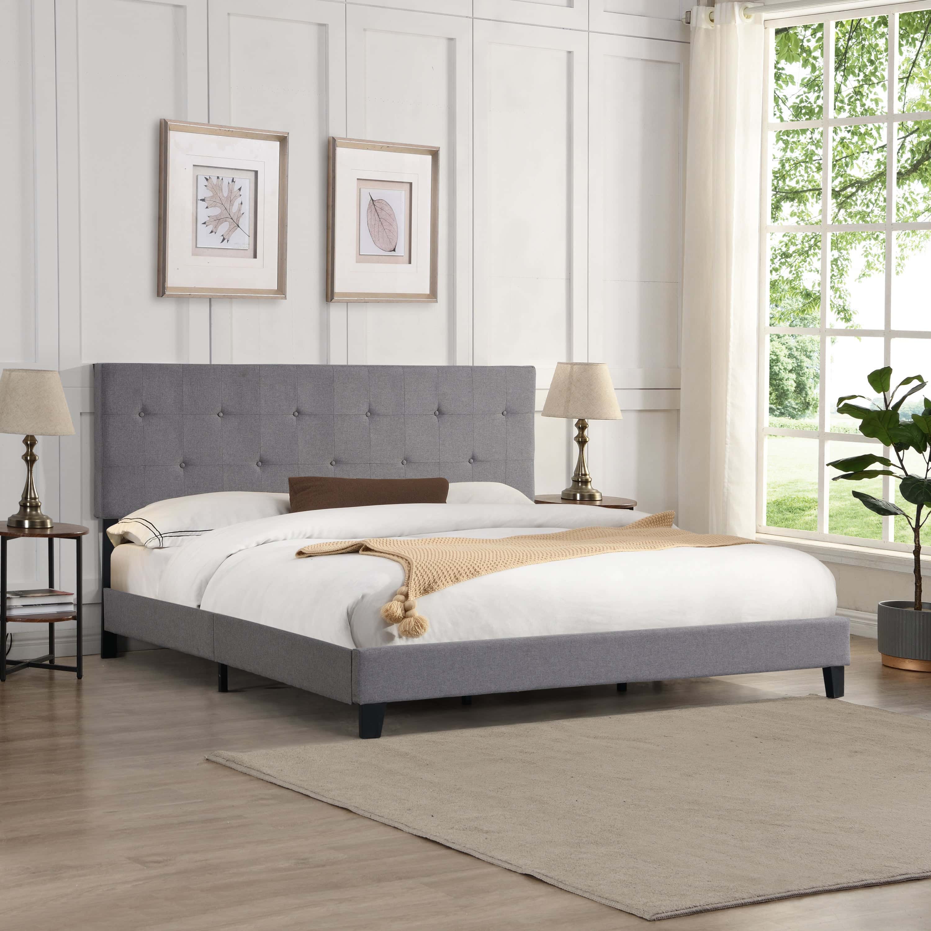 Landmark Traditional Style Upholstered Button-Tufted King Bed Made with Wood in Silver