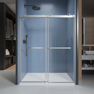 • Clear Tempered Safety Glass: The double sliding framless shower doors are made of 3/8-inch (10 mm) thick tempered glass with ANSI Z79.1 certified and SGCC certified for high impact resistance and high thermal stability to ensure durability and safety.