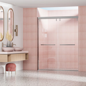 56 - 60 in. W x 72 in. H Semi-Frameless Shower Door, Double Sliding Shower Door, 1/4" (6mm) Clear Tempered Glass Shower Door with Explosion-Proof Film, Brushed Nickel 24D212S-60BN