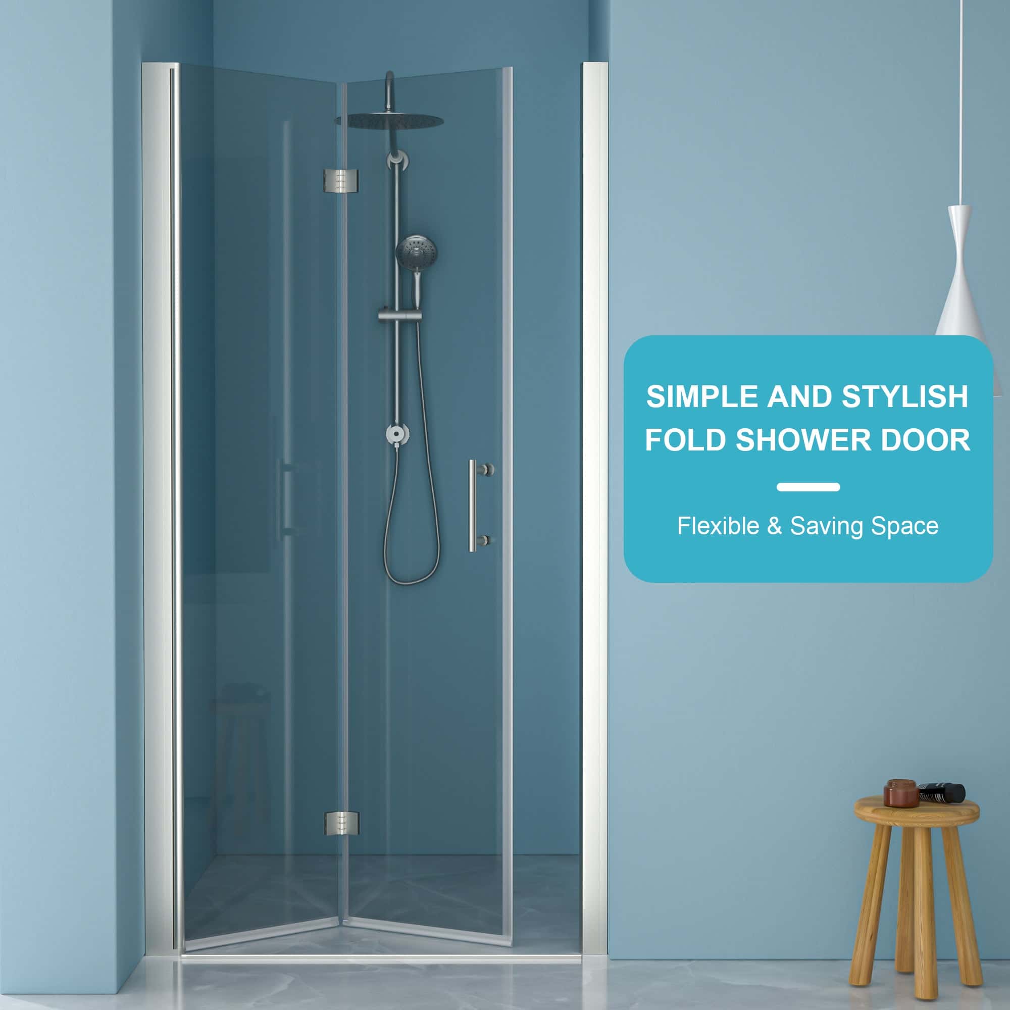36"W x 72"H Fold Frameless Shower Door with Tempered Glass