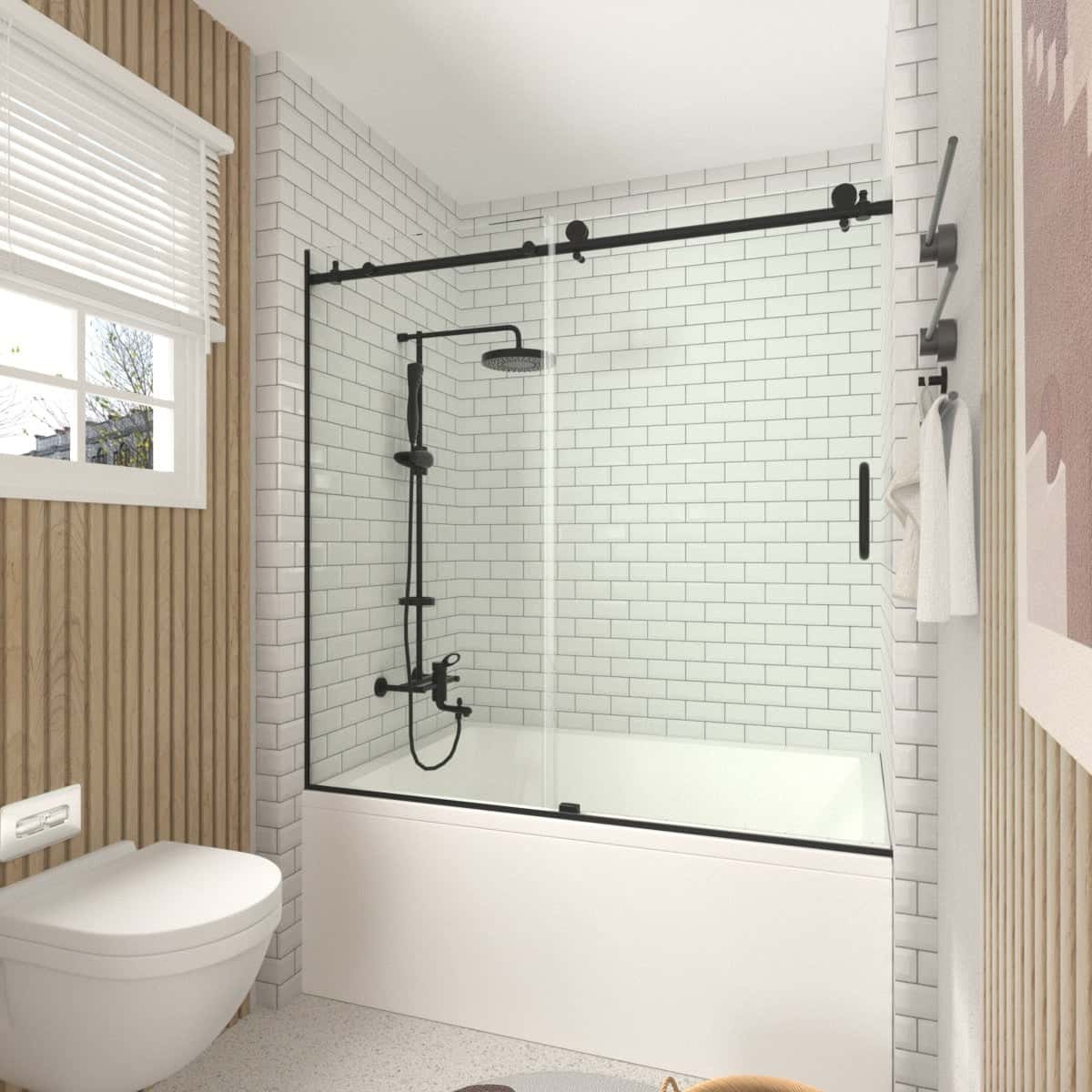 Shower Door 48" W x 76"H Double Sliding Shower Enclosure, Matte Black