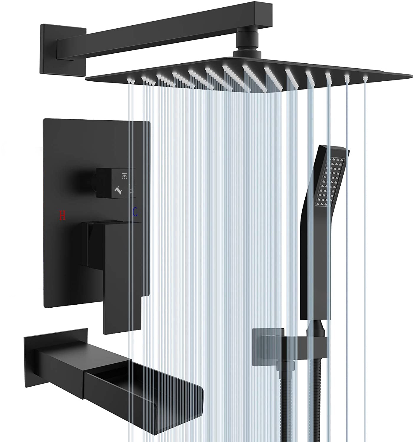 Modern Style matte black Wall Mount Tub Filler Bathroom Bathtub Faucet Shower Set