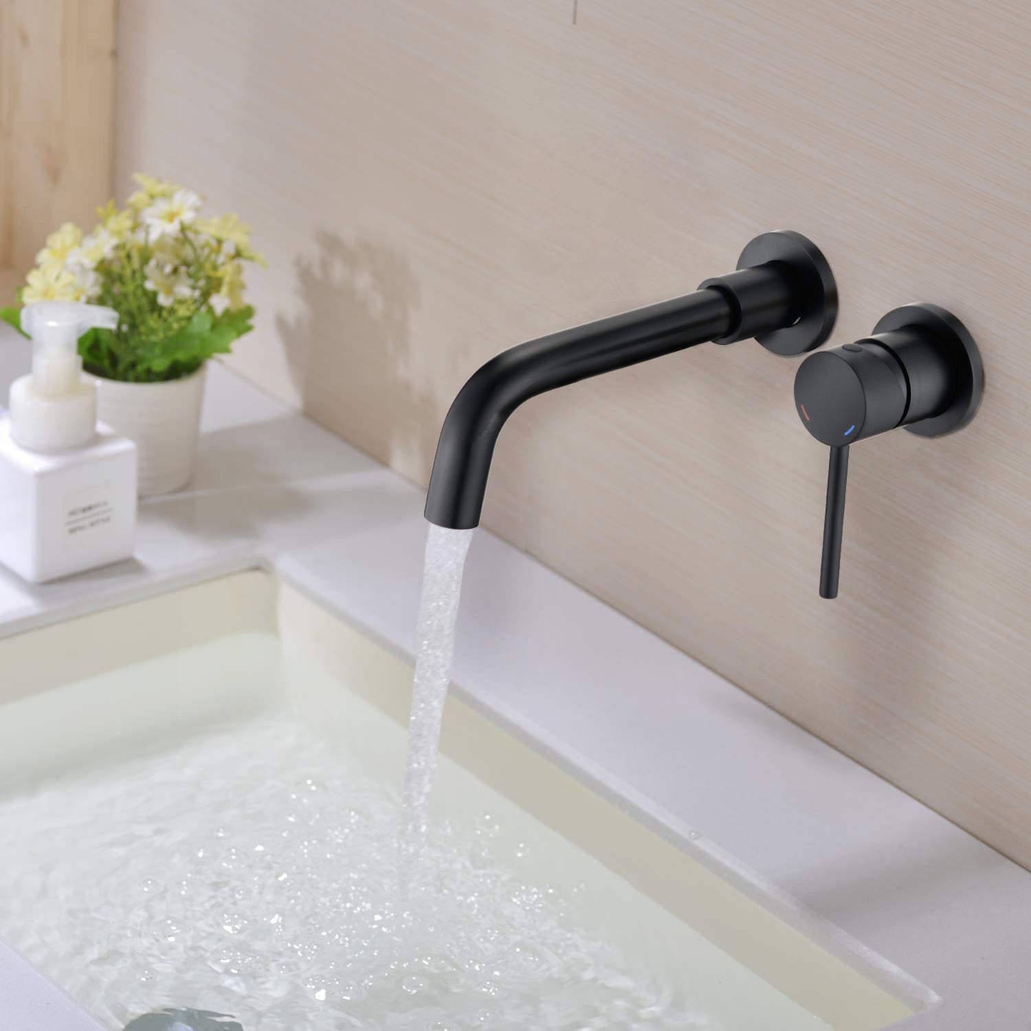 Wall Mount Single Handle Bathroom Faucet Matte Black