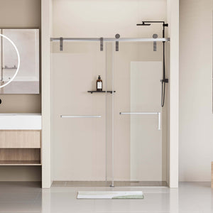 Transform your bathroom with the 48"W x 76"H Frameless Soft-Closing Shower Door. This sleek single sliding door is crafted from 5/16" (8mm) clear tempered glass, offering a modern and clean aesthetic. The explosion-proof film enhances safety, while the stainless steel hardware ensures durability and smooth operation. The soft-closing mechanism guarantees a quiet and secure closure, making it ideal for a peaceful shower experience. Finished in chrome, this shower door blends style and functionality, making it the perfect addition to any contemporary bathroom.