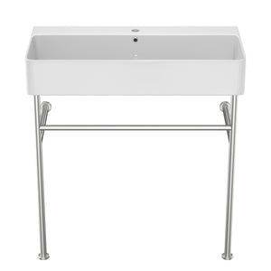 35" Bathroom Console Sink with Overflow,Ceramic Console Sink White Basin Polished Nicke Legs