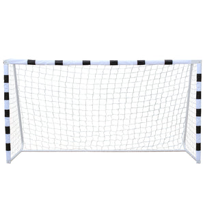 - [Extra Strong Soccer Goal] This all-weather soccer goal is framed with thickened UPVC pipes and stably reinforced with joint connectors. The back bracket structure is aiming for extra stability while the 4 ground stakes are included to hold the soccer goal in place. It wonβt easily deform, crack or flip over.