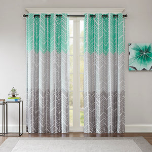 Create a color blocked look in your room with our Intelligent Design Adel Total Blackout Window panel. This geometric chevron design uses light grey, taupe, and aqua for a unique combination of color and pattern. Finished with a heavy 3 pass foamback liner, this panel is 100% total blackout for a maximum barrier against all exterior light and noise intrusion for the utmost privacy, while the thermal technology provides energy efficiency. Grommet top makes this panel easy to hang, open, and close through the day; fits up to a standard 1.25" diameter rod. Machine washable for easy care; complete the collection with coordinating bedding and shower curtain sold separately.